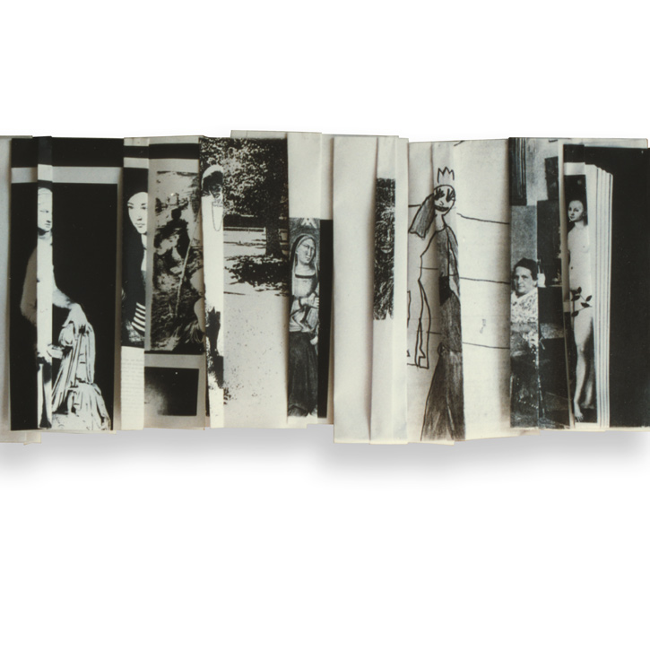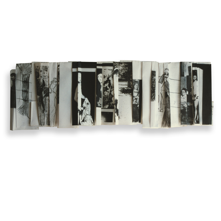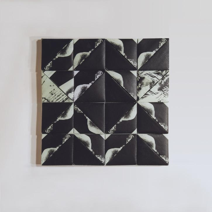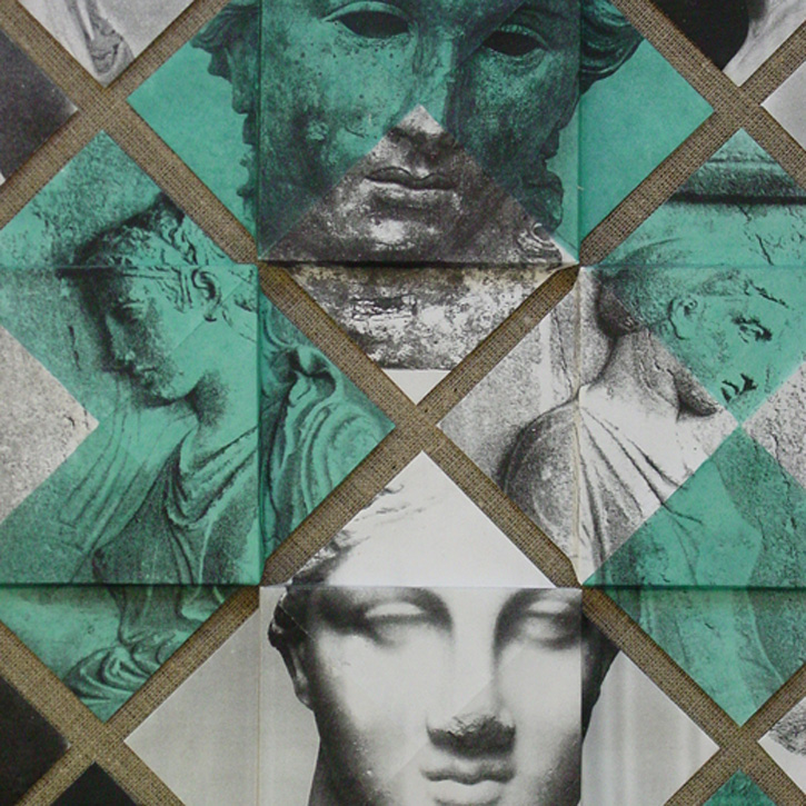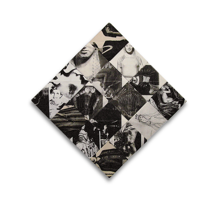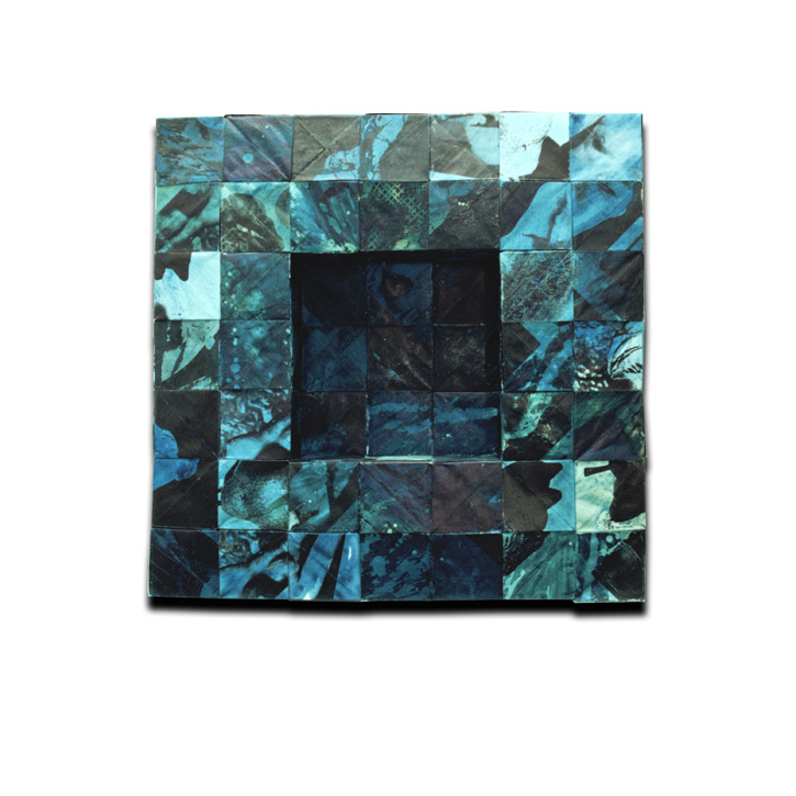 Papier, bedruckt, bemalt, gefaltet; Tusche auf Leinwand.