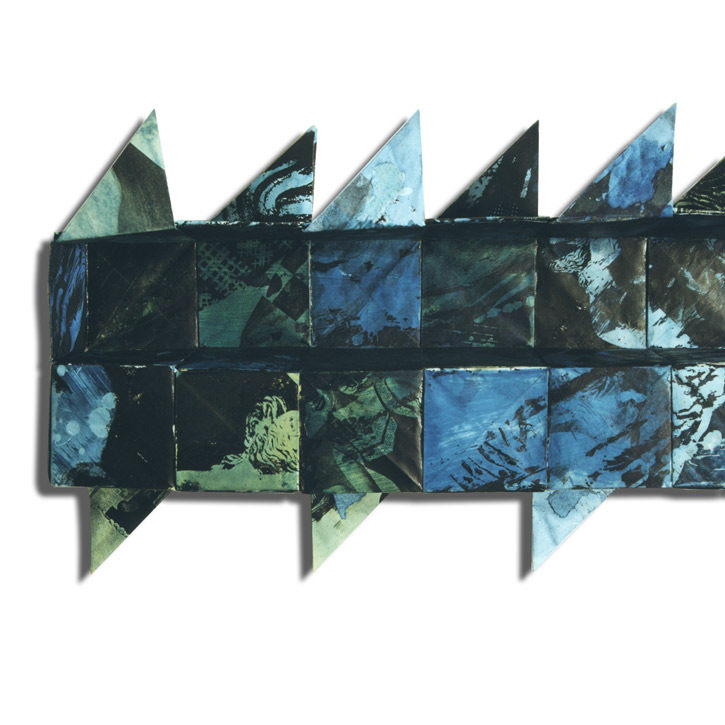 Papier, bedruckt, bemalt, gefaltet; Eitempera, Wachs.