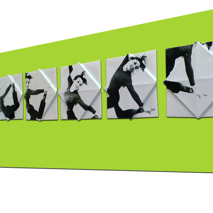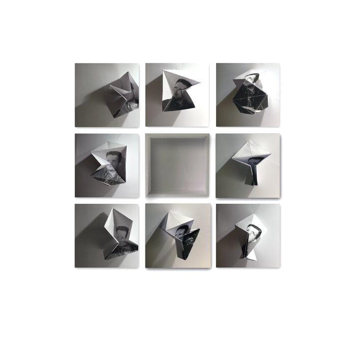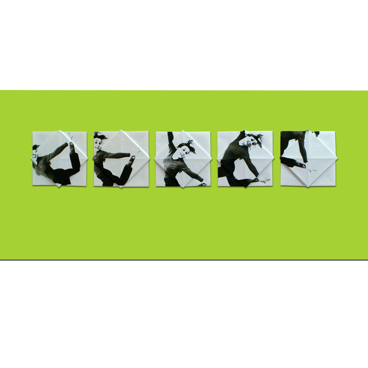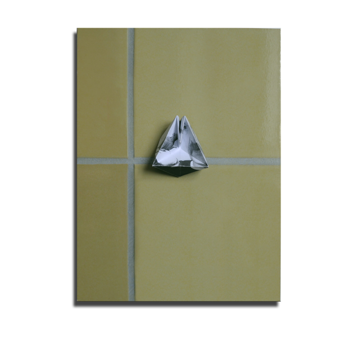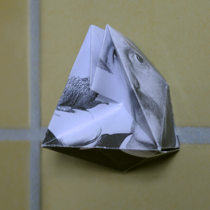 Papier, bedruckt, gefaltet und 9 Teile zusammen genäht.