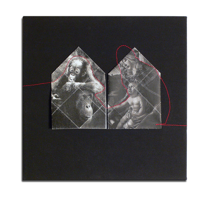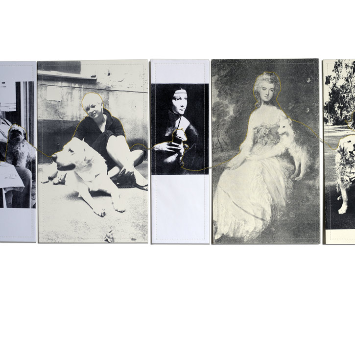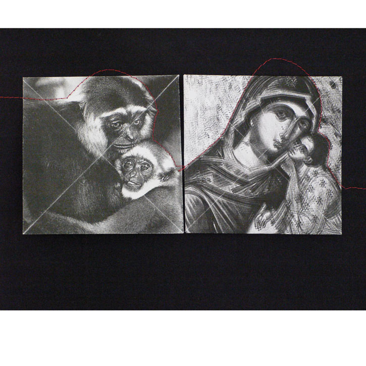 Papier, bedruckt, gefaltet und genäht; auf Baumwolle