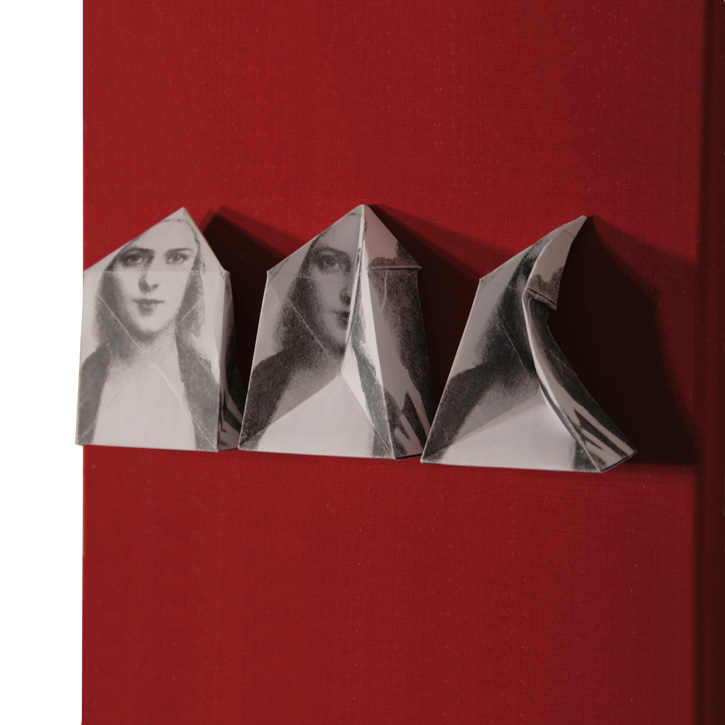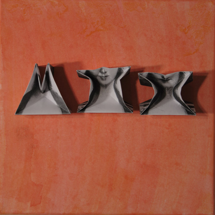 Papier, bedruckt, gefaltet auf Holz.