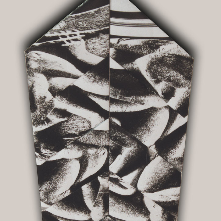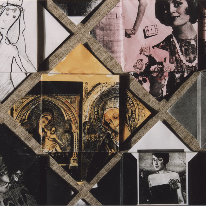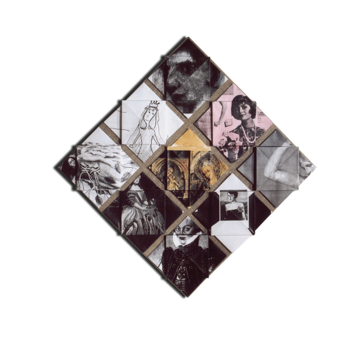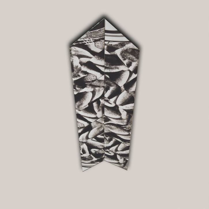 Papier, bedruckt, bemalt, gefaltet; Tusche auf Leinwand.