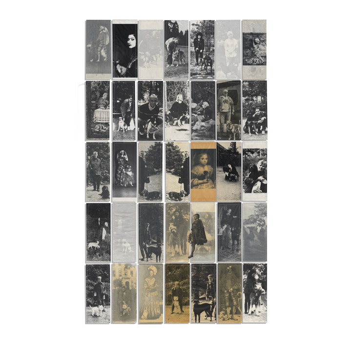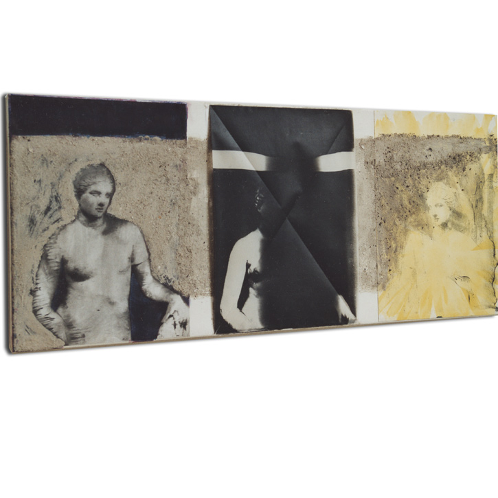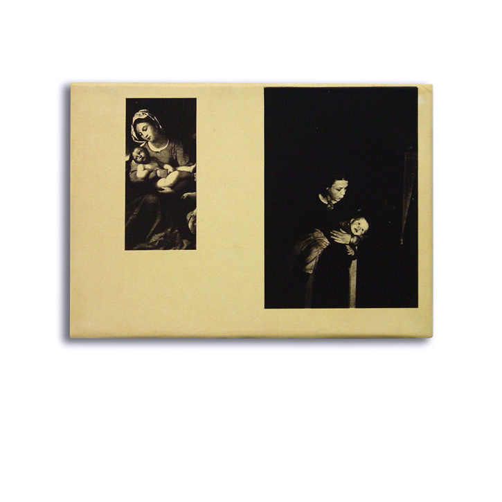 Papier, bedruckt, bemalt; Tusche; Olivenöl; auf Karton; auf Baumwolle.