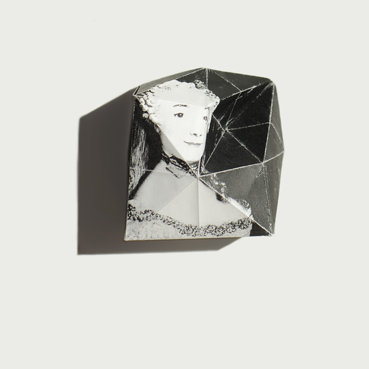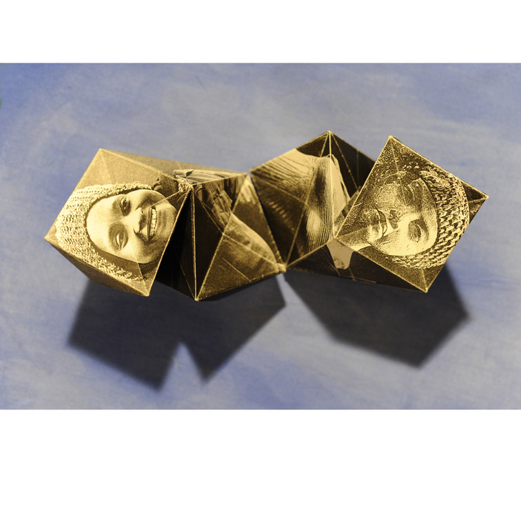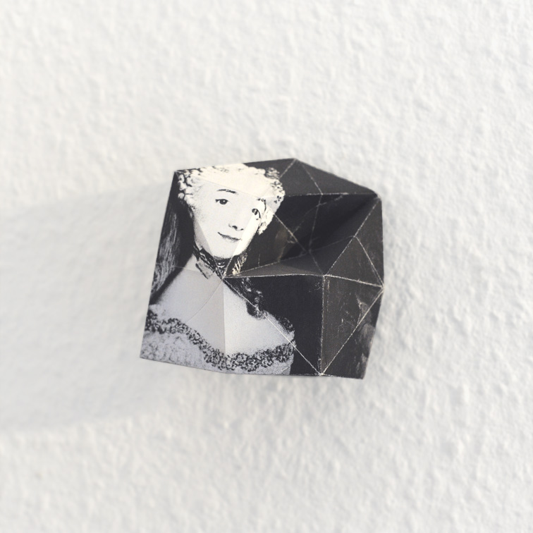 Papier bedruckt, gefaltet; auf Acryl.